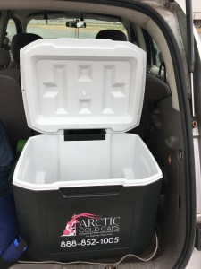 Dry ice blocks can be placed at the bottom of a cooler to further keep the temperature down.
